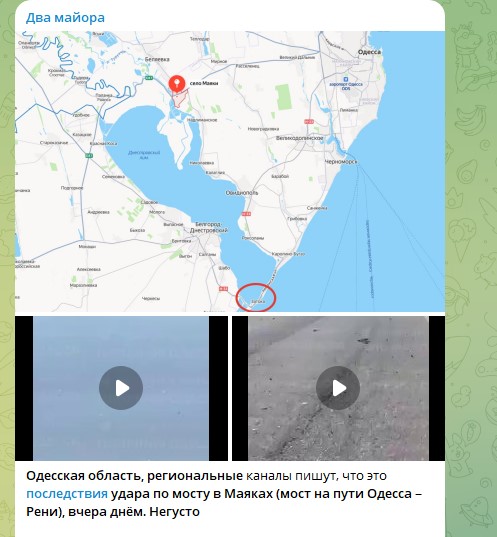 Аналитики "Военной хроники" обратили внимание, что удары по мостам в Одесской области имеют более глубокое значение, чем просто уничтожение инфраструктуры противника. Эксперты заметили, что многие поспешили наделать выводов, что "отрезается логистика НАТО из Румынии", "но такая версия справедлива лишь отчасти".