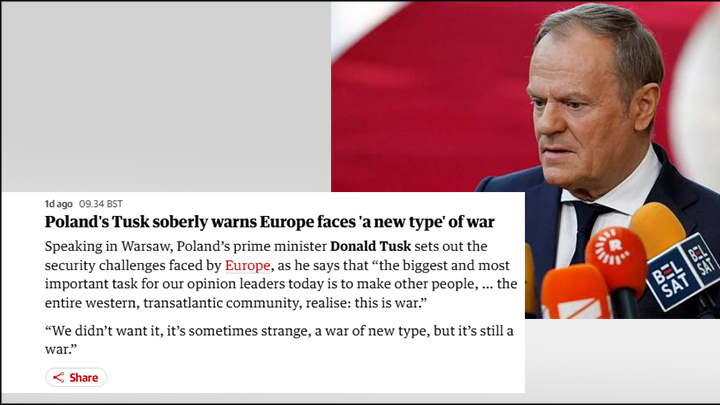 "В ближайшем будущем Европа может столкнуться с войной нового типа, втянувшись в конфликт с Россией", цитирует The Guardian заявление польского премьера Туска. Скриншот страницы издания