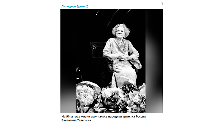 Валентина Талызина жила сценой. И продолжала работать до конца. Скриншот ТГ-канала "Липецкое время Z"