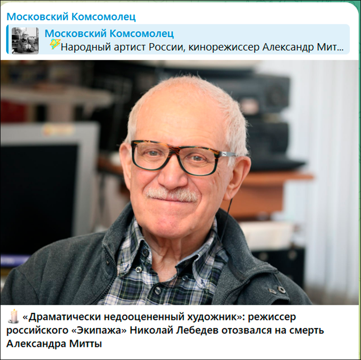 Александр Митта всю жизнь отдал своей профессии. Скрин ТГ-канала "Московский комсомолец"