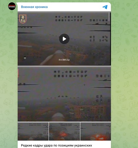 Редкие кадры удара сразу тремя ФАБ. Фото: Скриншот Telegram "Военная хроника"