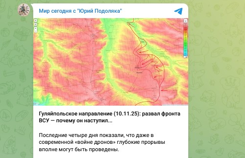 Русские продвигаются всё глубже Фото: Скриншот Telegram "Мир сегодня с Юрий Подоляка"