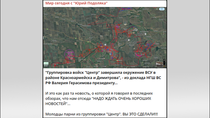 Юрий Подоляка раскрыл некоторые важные детали того, как проходила операция по окружению группировки ВСУ в районе Покровска (Красноармейска) и Мирнограда (Димитрова), которая до поры до времени "требовала несколькодневного молчания". По его словам, "наши части совершали довольно рискованный маневр и его детали не должны были стать до поры до времени публичными", но "теперь всё позади и можно кое о чём рассказать":