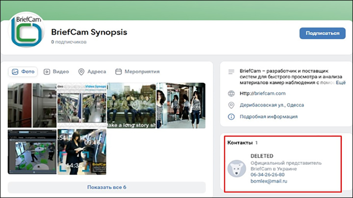 Группа компании в ВК. Среди контактов представитель из Одессы. Скриншот ВК