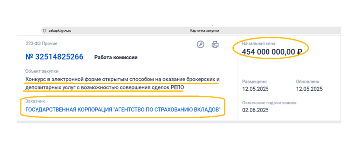 Сумма контракта составляет 454 миллиона рублей. Понимаете, какой занимательный вариант получается? В АСВ решили поиграть страховыми деньгами на бирже. Почти полмиллиарда поступают в соответствии с проектом на Московскую биржу, а дальше — ну, как получится.
