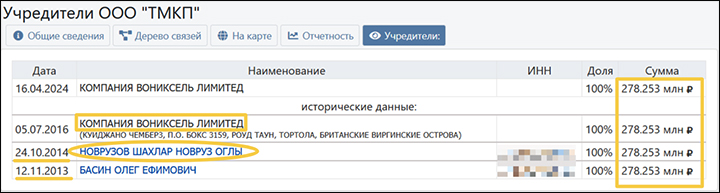 В 2016-м Новрузов "передал" ООО "ТМКП" во владение офшору, зарегистрированному на Британских Виргинских островах (БВО), компании "Вониксель Лимитед".