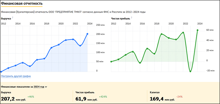 Во-первых, гендиректором "ТМКП" с 2014 года был и остаётся один и тот же человек — некий Александр Вовк. Причём количество сотрудников там — на предприятии с многомиллионными оборотами и капиталом (см. инфографику ниже) — согласно отчётам, всего-навсего 1 (один!) человек. Надо полагать, сам руководитель. Тот же Вовк в 2024-м стал руководителем свежесозданного ООО "Темрюкский морской перегрузочный терминал" (адрес тот же, на Уральской, 216/1, в Краснодаре), учредителями которого значатся другой брат Шахлара — Гюндуз Новрузов и уже упоминавшаяся компания "Дарт Фрут" самого Новрузова-старшего.