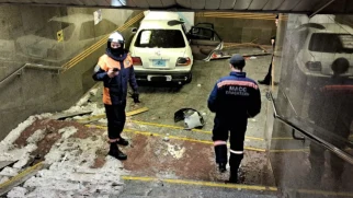 Машина выбила двери и слетела вниз по лестнице, врезавшись в стену подземного перехода.