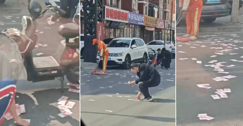 Денежный дождь пролился на прохожих в Китае: Есть видео улицы, усыпанной купюрами