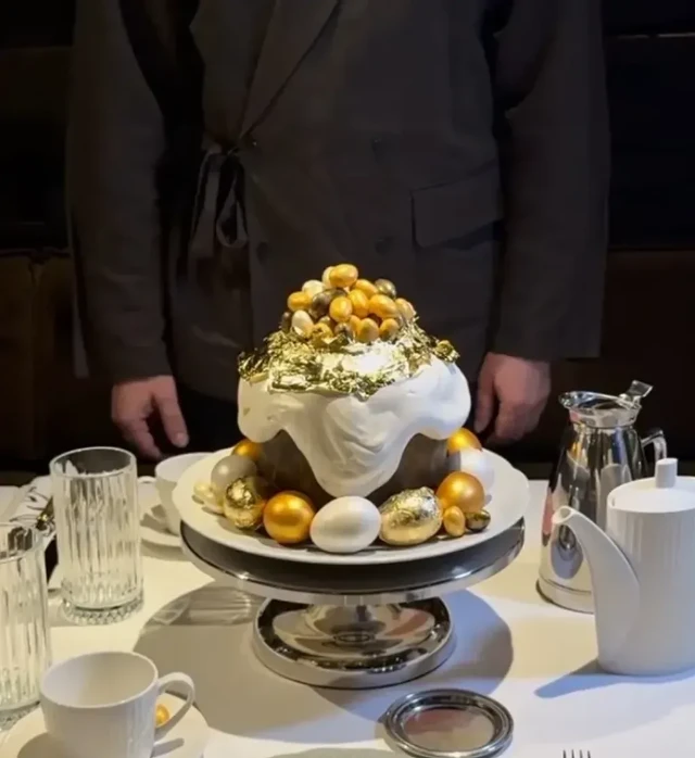 «Невероятная работа! Это хрустальная карамель, золотое напыление. Над созданием каждого кулича трудились мастера-кондитеры на протяжении семи часов. Это настоящее произведение искусства, поражающее своей красотой», — поделился своими впечатлениями артист.