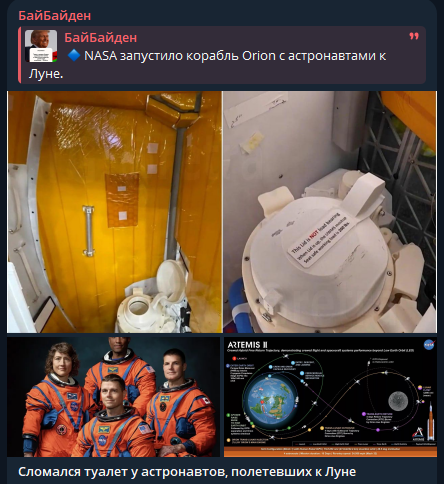 Вскоре после запуска на пресс-брифинге был раскрыт кошмарный сценарий: возникла проблема с единственным туалетом на борту капсулы Orion,